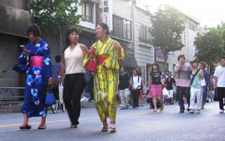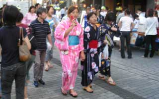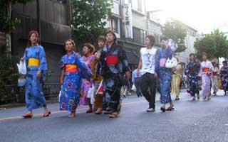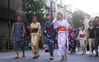 Tokio - Asakusa, Sumidagawa Fest, Frauen und Männer im Kimono