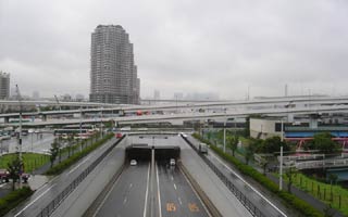 Tokio - Odaiba, Bild auf und Blick von der Brücke